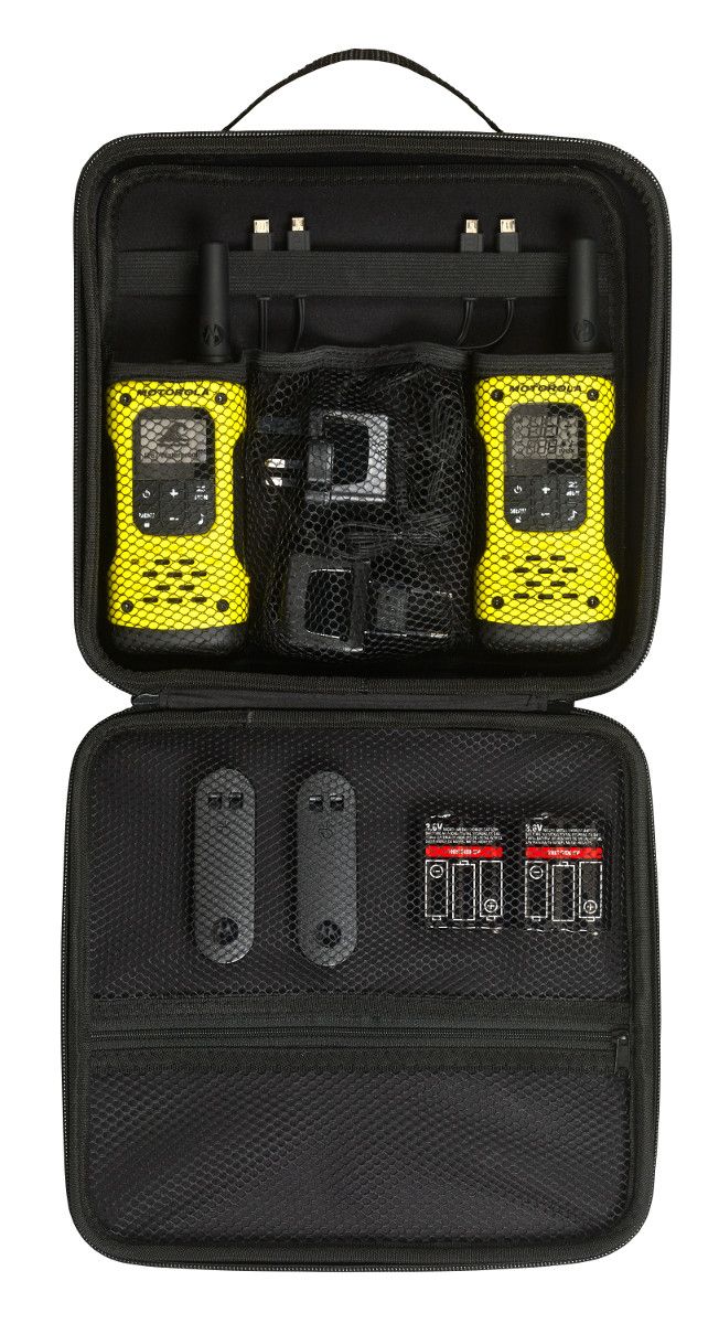 У базовий функціонал Talkabout T92H20 були додані унікальні функції безпеки, які не дозволять вас зненацька застати. Ви зможете використовувати кліпсу Talkabout T92H20 як свисток - якщо потрібно привернути до себе увагу, просто зніміть кліпсу з рації та подуйте в неї. Рації T92H20 оснащені аварійною кнопкою - натисніть та утримуйте її протягом 3-х секунд і пролунає гучний сигнал тривоги, а також активується функція iVOX, (гучний зв'язок) ви зможете покликати вашу групу на допомогу без допомоги рук.