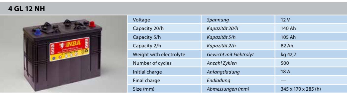 Спеціальні акумулятори NBA, що підходять для легких тягових пристроїв, виготовляються відповідно до критеріїв, які застосовуються для потужних тягових акумуляторів.