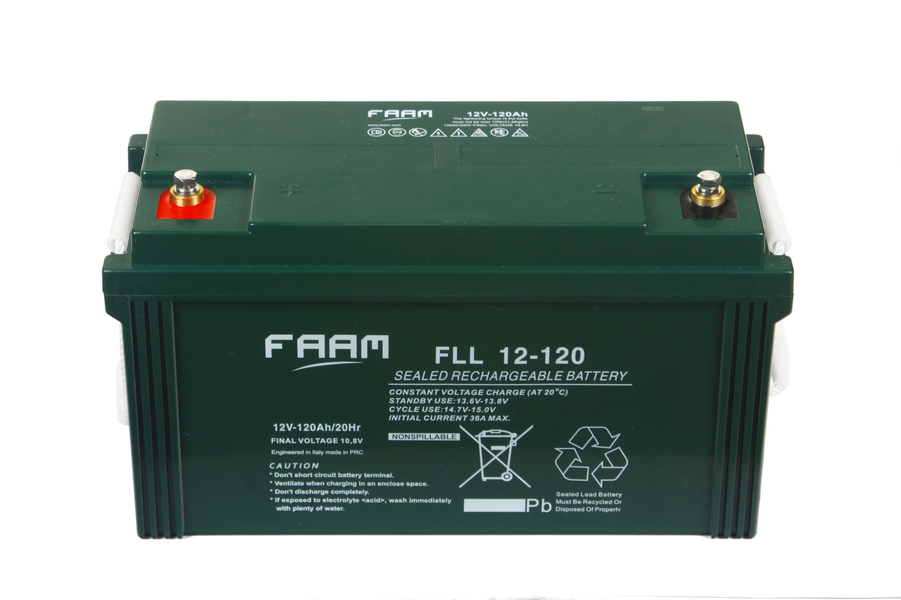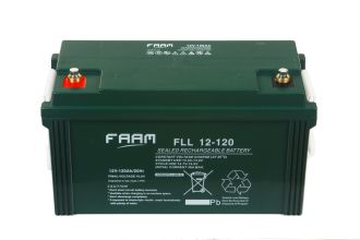 Акумулятор FAAM FLL 12-120 має плоскі решітчасті позитивні та негативні пластини зі сплаву Pb/Ca/Sn без вмісту сурьми, які розділені мікропористим скло-волоконним сепаратором просоченим електролітом та встановлені в пластиковий вогнезахисний та ударостійкий контейнер із ABS матеріалу класу V-0. Контейнер акумулятора закритий кришкою з того ж ABS матеріалу методом термоущільнення за рахунок чого досягається повна герметизація корпусу батареї. Всі акумулятори FAAM оснащені надійним запобіжним клапаном, конструкція якого запобігає викиду кислотного туману. Допускаєтся експлуатація в будь-якому положенні (крім положення клемами вниз).
