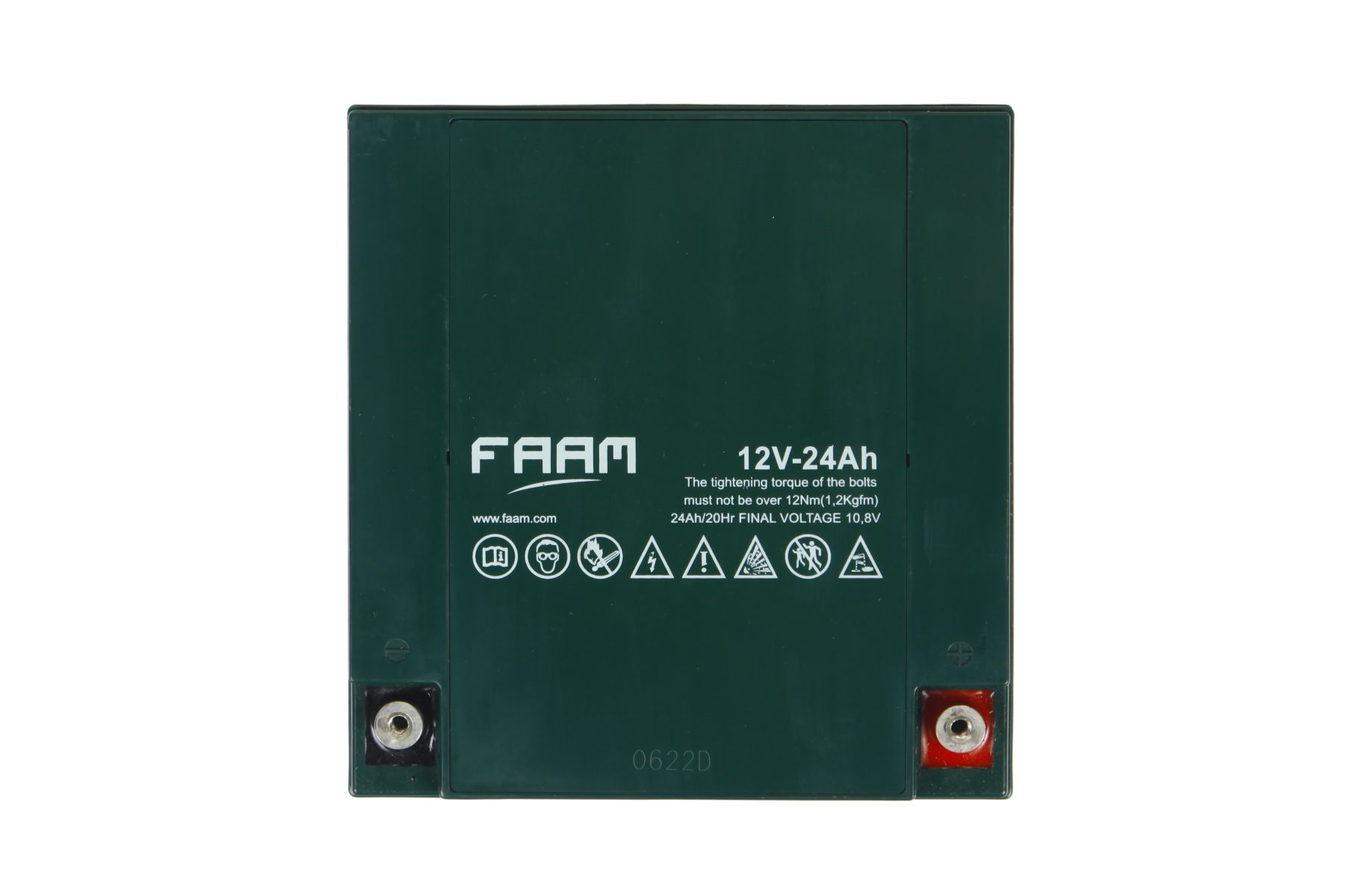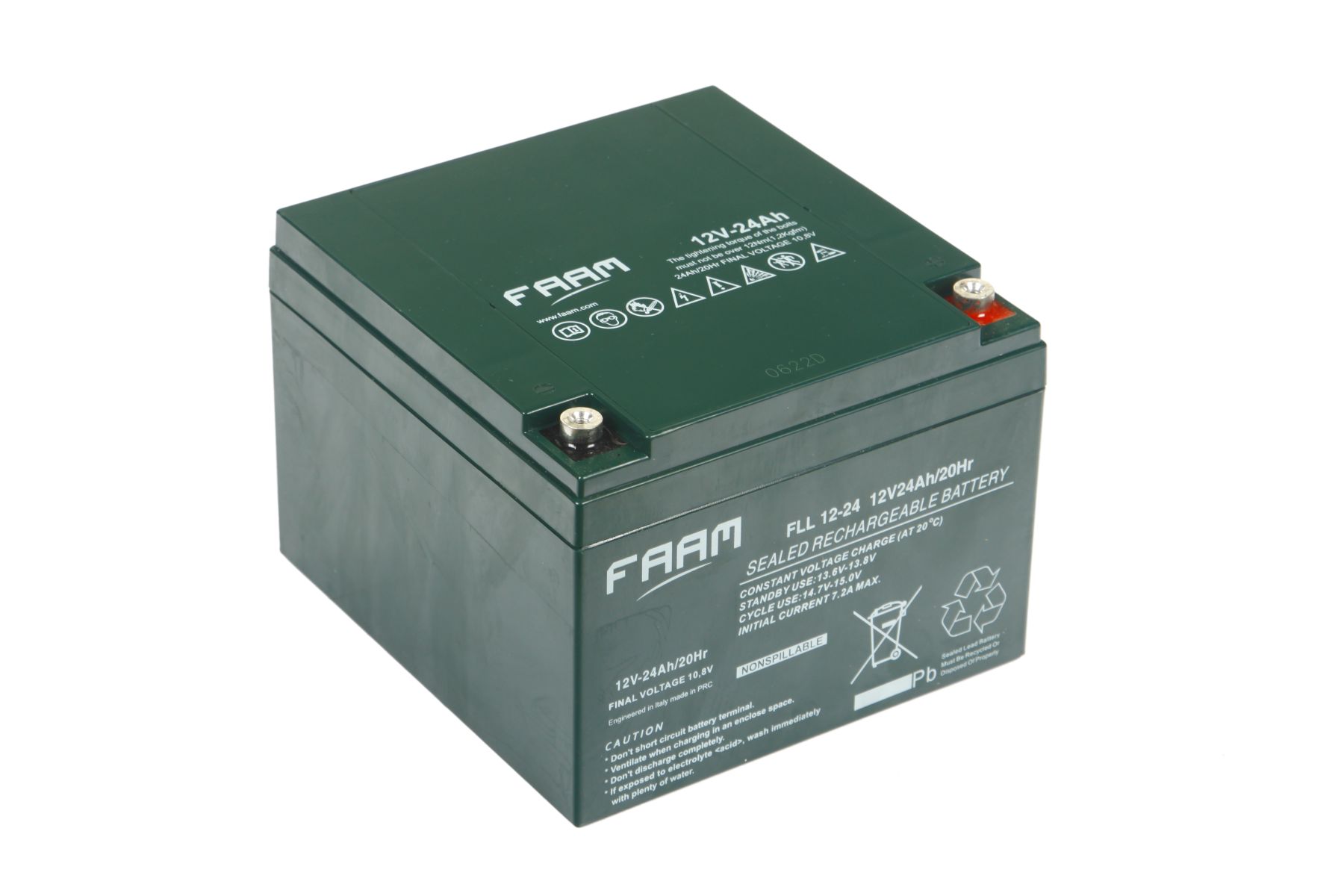 Акумулятор FAAM FLL 12-24 має плоскі решітчасті позитивні та негативні пластини зі сплаву Pb/Ca/Sn без вмісту сурьми, які розділені мікропористим скло-волоконним сепаратором просоченим електролітом та встановлені в пластиковий вогнезахисний та ударостійкий контейнер із ABS матеріалу класу V-0. Контейнер акумулятора закритий кришкою з того ж ABS матеріалу методом термоущільнення за рахунок чого досягається повна герметизація корпусу батареї. Всі акумулятори FAAM оснащені надійним запобіжним клапаном, конструкція якого запобігає викиду кислотного туману. Допускаєтся експлуатація в будь-якому положенні (крім положення клемами вниз).