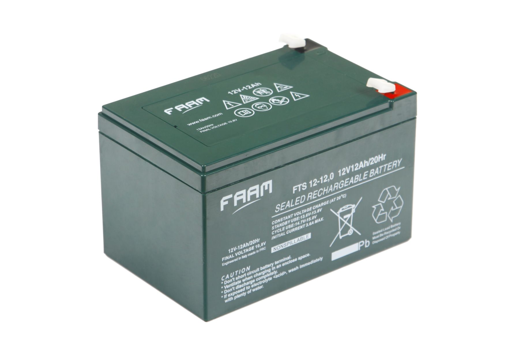 Акумулятори VRLA (Valve Regulated Lead Acid) технології AGM (Absorbed Glass Material) ТМ "FAAM" виробляються повністю на власних потужностях корпорації SERI Group, за рахунок цього, контроль процесу виробництва проводиться на усіх його етапах та досягається висока якість безпосередньо самих акумуляторів. Серія акумуляторів FTS – універсального призначення, як в побутових так і в промислових приладах. Конструкція корпусу акумуляторної батареї повністю герметизована, що запобігає витоку електроліта. Температура зберігання від -20°С до +60°С. Допустима температура наволишнього середовища при експлуатації АКБ від -10°С до +50°С. В акумуляторах, виготовлених по технології AGM, позитивні та негативні пластини розділені сепаратором із скловолокна просоченим електролітом. Корпус АКБ виготоовлено з платмаси ABS. Допускаєтся експлуатація в будь-якому положенні (крім положення клемами вниз).